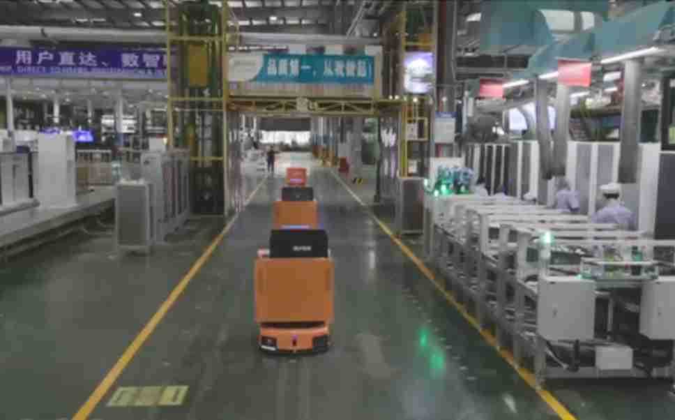 为车载冰箱物流配送打造的智能解决方案,,包含产中物流通过潜伏举升AMR搬运至线边,,产后成品物流智能仓储,,流程包含产中物流智能齐套入库,,,线边安灯叫料AMR智能配送至线边,,,成品入库、、、出库,,,通过无人堆高车机器人,,智能仓储管理替代人工作业管理,,,,实现更高存储、、更高效率、、更具柔性化的解决方案。。
